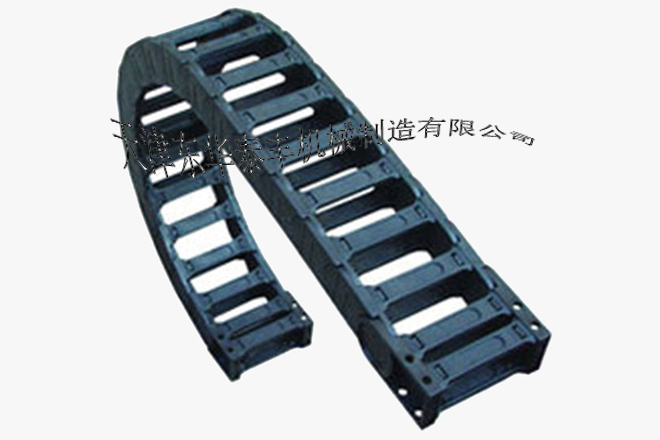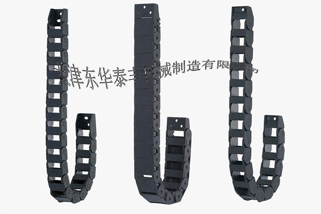 ? 拖鏈外形似坦克鏈,由眾多單元鏈節(jié)組成,鏈節(jié)之間轉(zhuǎn)動自如。相同系列的拖鏈內(nèi)高、外高、節(jié)距相同,拖鏈內(nèi)高、彎曲半徑R可有不同的選擇。單元鏈節(jié)由左右鏈板和上下蓋板組成,拖鏈每節(jié)都能打開,裝拆方便,不必穿線,打開蓋板后即可把電纜、油管、氣管等放入拖鏈內(nèi)。