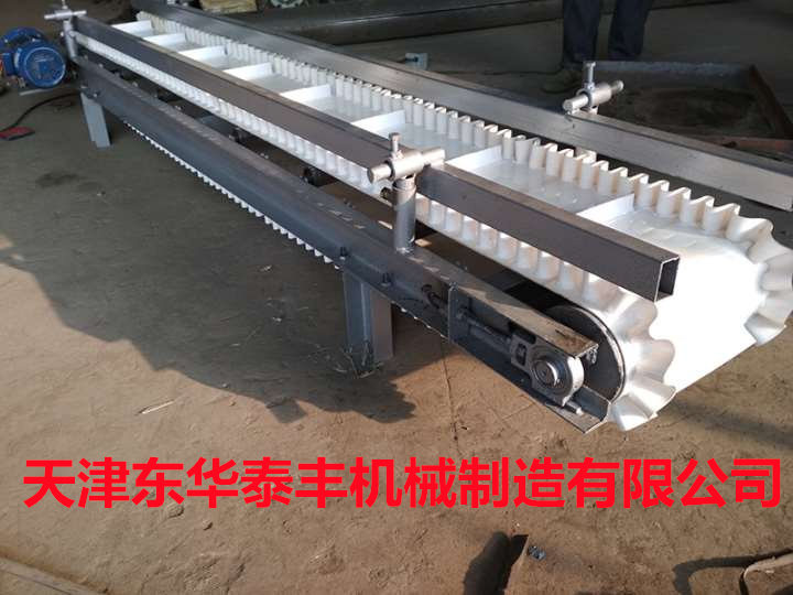 擋板輸送帶擁有水平輸送、傾角輸送、垂直輸送、定量包裝輸送等多種功能。主要用于散裝物料的輸送,包括煤、礦石、沙子、化肥、糧食、食品等。輸送的顆粒從粉末狀到400mm的大粒度皆可。根據(jù)輸送機(jī)的功率,擋板輸送帶的輸送量能達(dá)到1m3/h~6000m3/h。